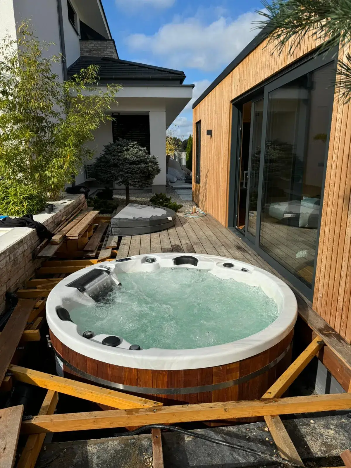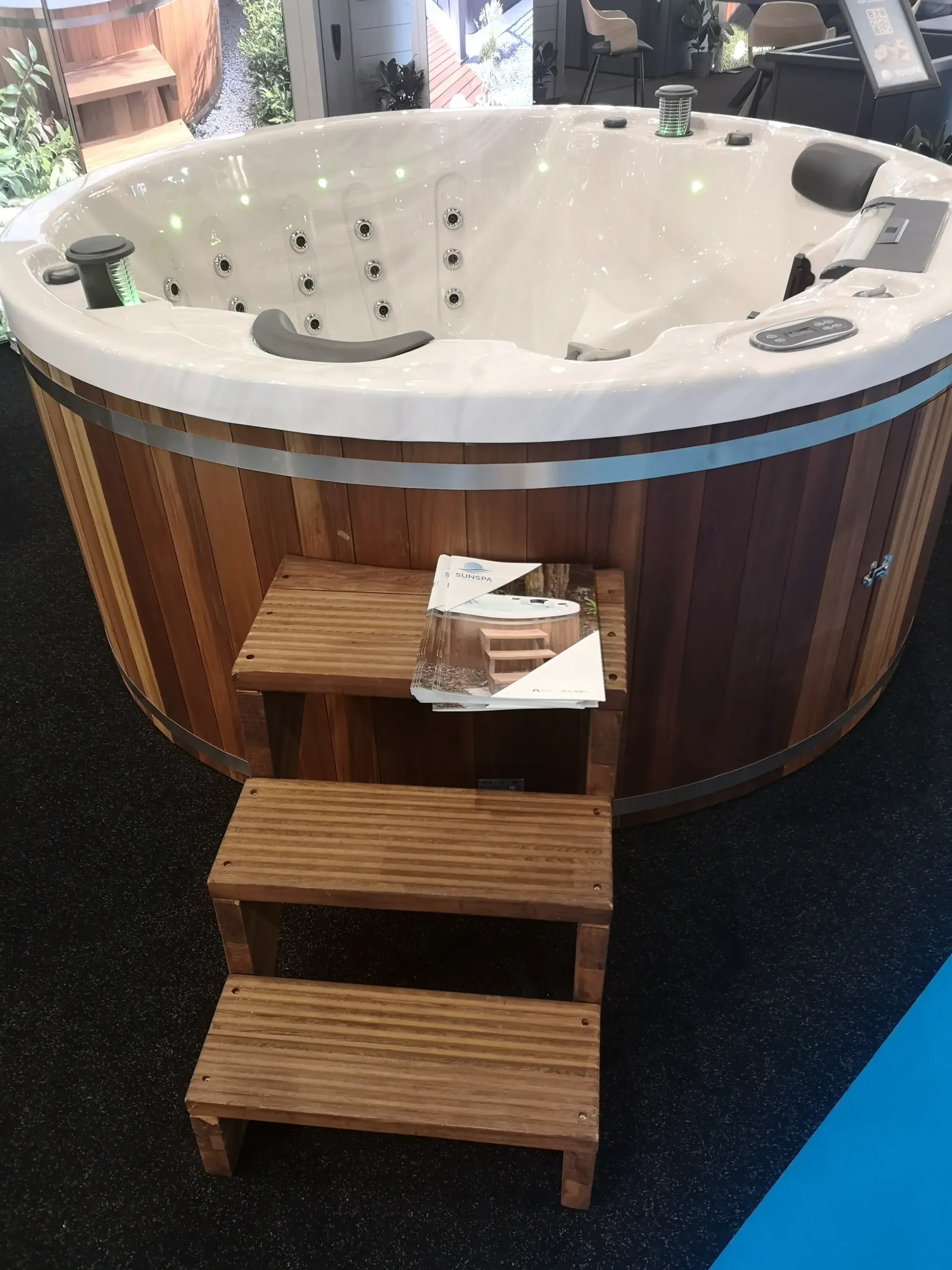 6-osobowa wanna SPA Sunspa Python jako okrągła Wanna SPA ogrodowe do wspólnego relaksu