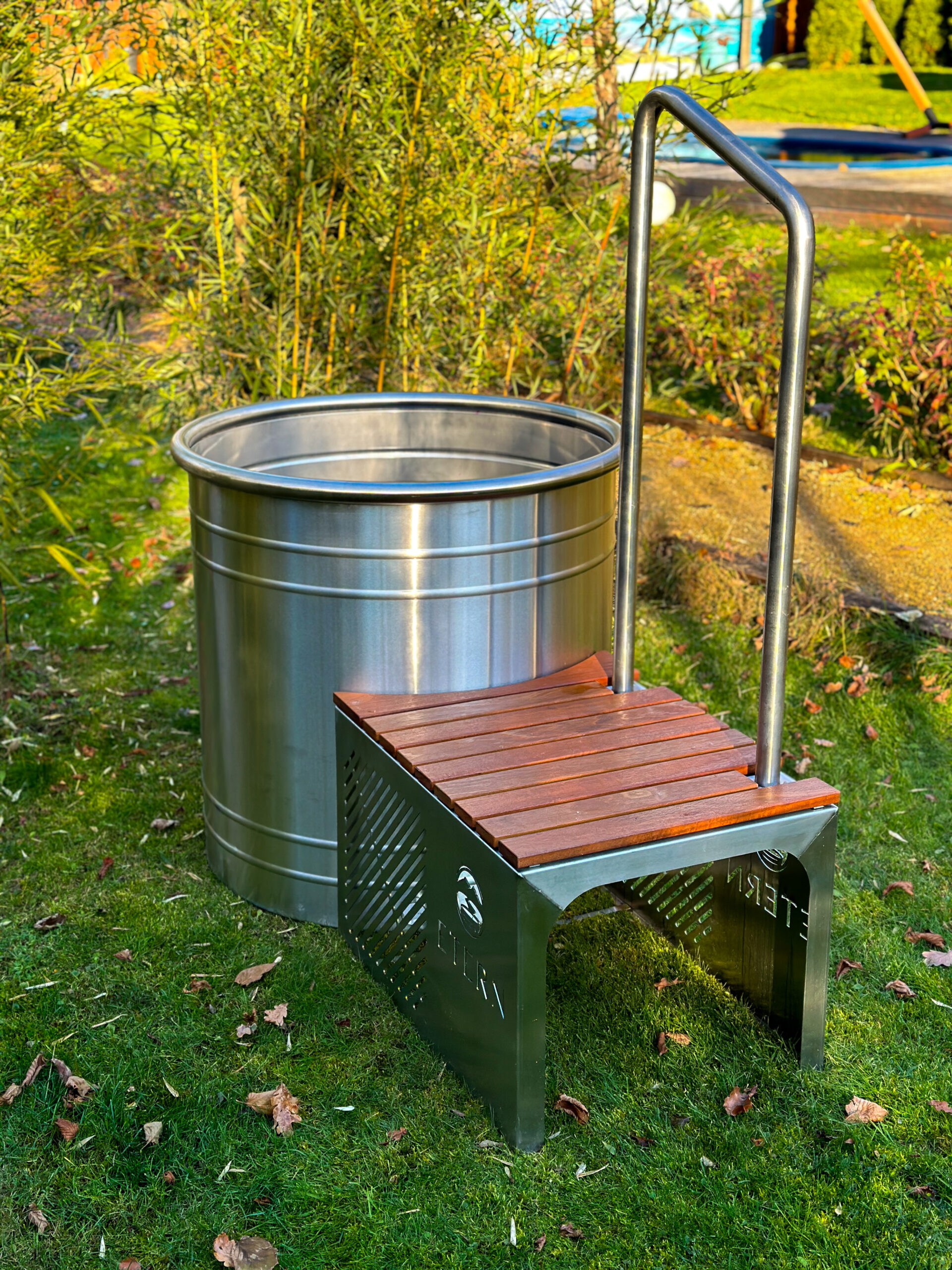 Nowoczesna forma i stalowe wykończenie sprawiają, że beczka Etern wpasowuje się zarówno w prywatne ogrody, jak i profesjonalne strefy wellness, hotele czy pensjonaty. Jej trwałość i odporność na intensywne użytkowanie czynią z niej inwestycję na lata.