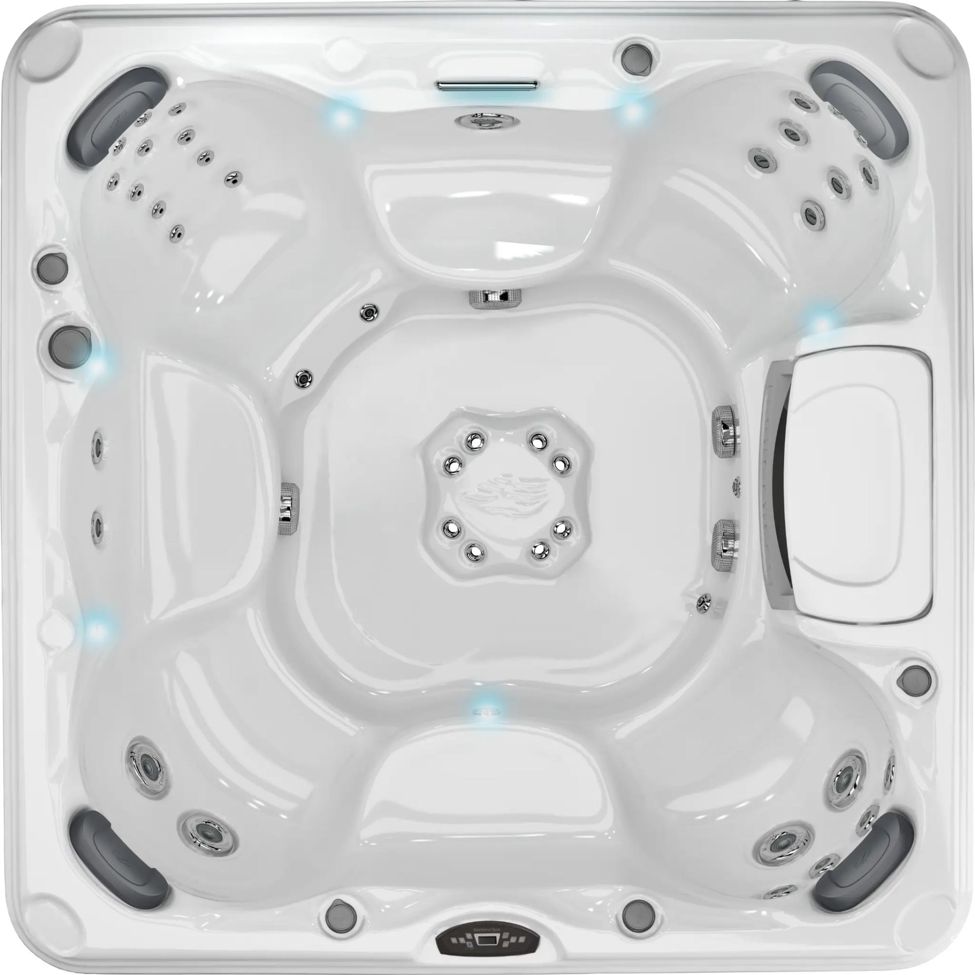 Sundance® Chelsee® wykorzystuje system 780 Solid-State Electronic Controls z wyświetlaczem LCD, który umożliwia wygodne sterowanie temperaturą wody oraz cyklami filtracji. Panel został zaprojektowany tak, aby codzienna obsługa była szybka, intuicyjna i nie sprawiała problemów nawet mniej technicznym użytkownikom.